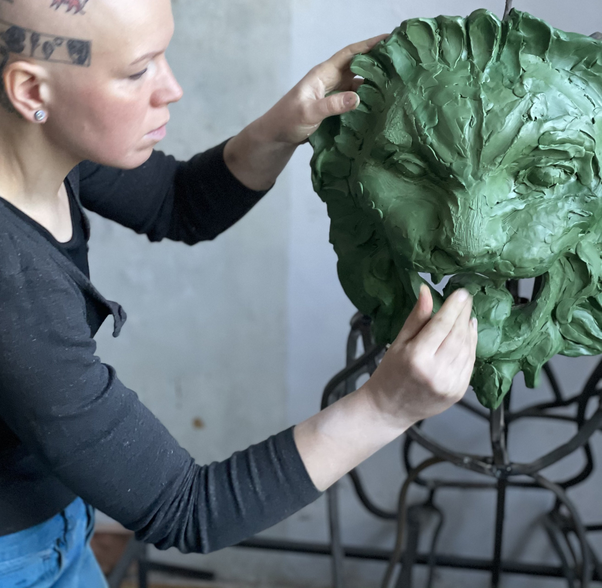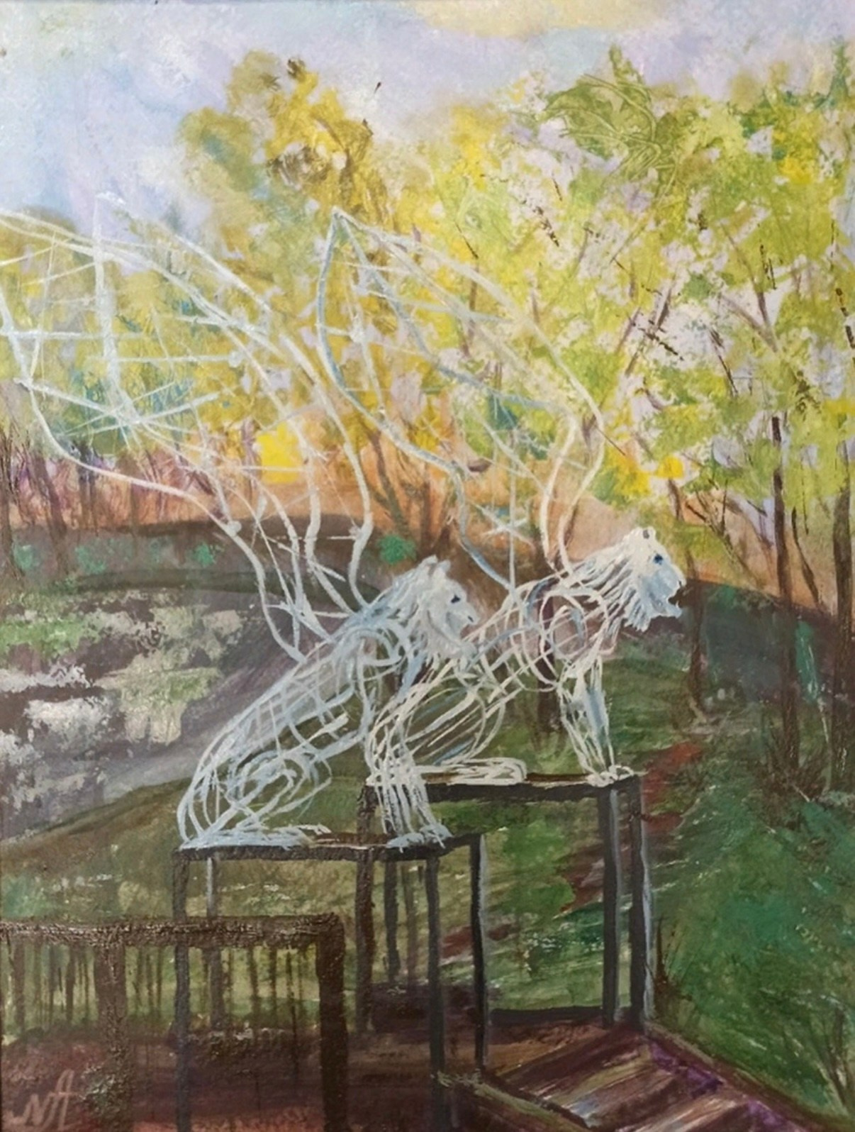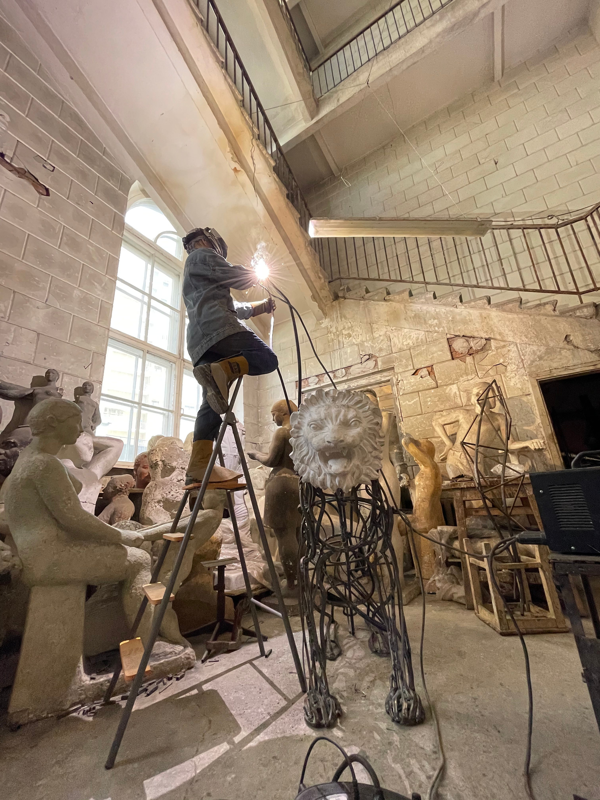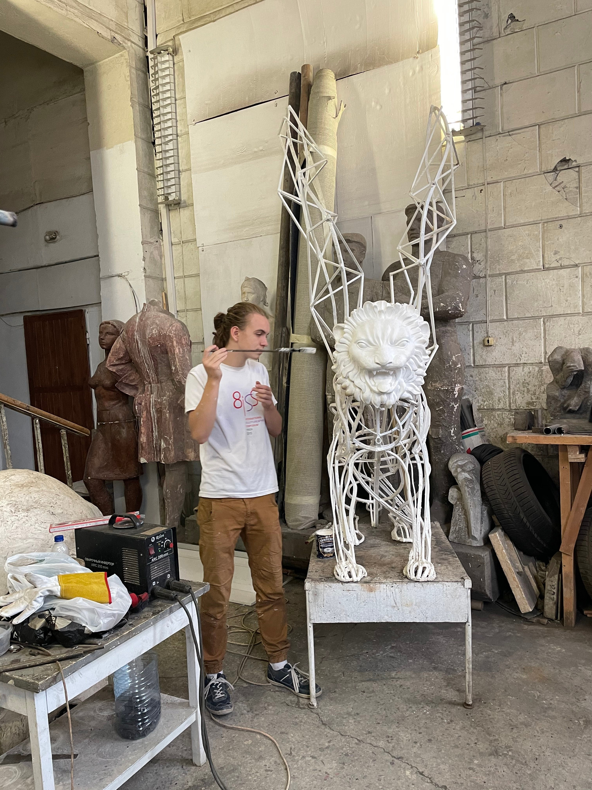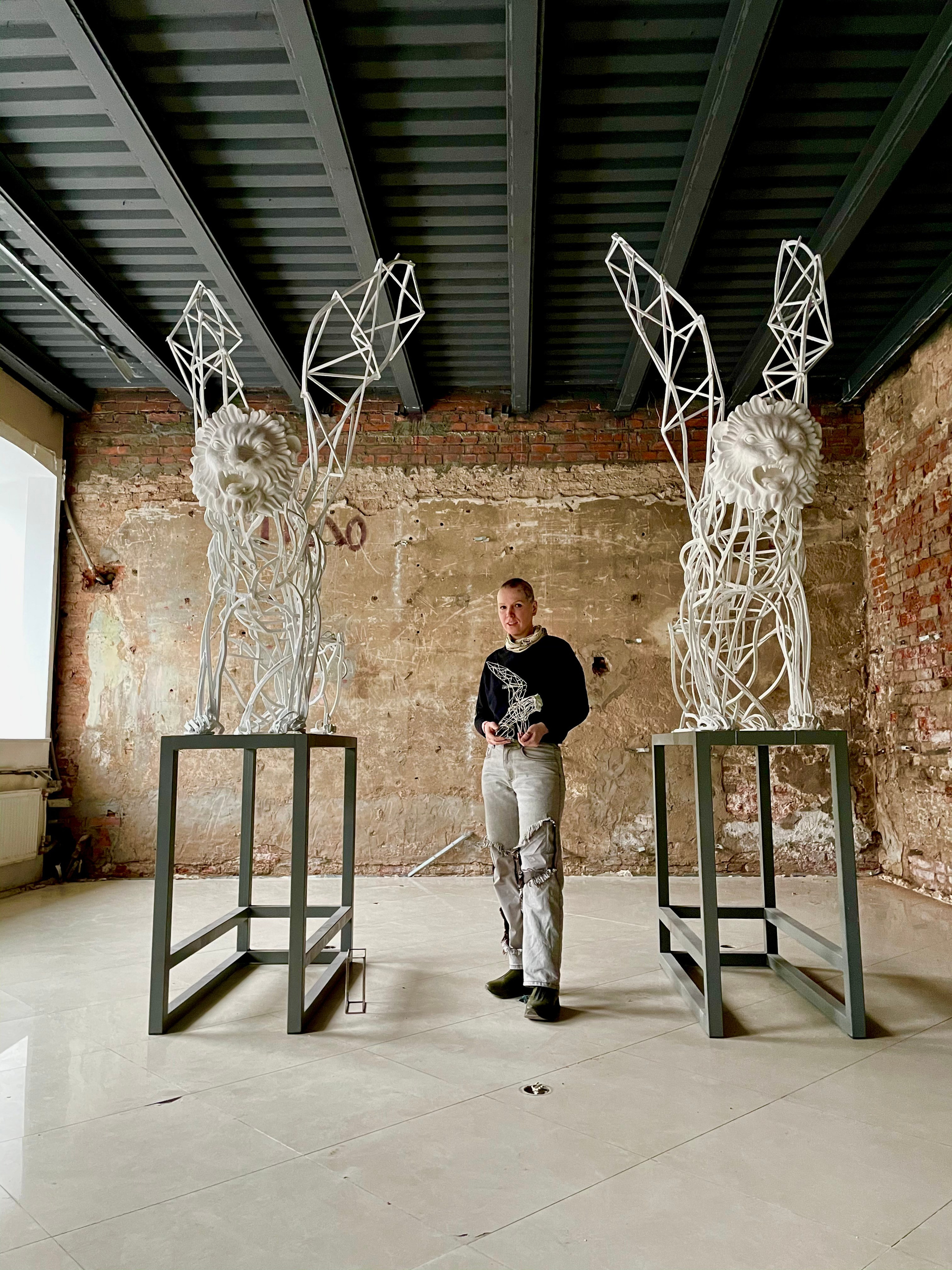 А вот другим водным артериям, некогда окраинным, а нынче уже поглощенным разрастающимся городом, не повезло, охранных львов им не досталось. Проект Антонины Фатхуллиной (несколько скульптур которой уже стоят в Петербурге и за его границами) тестирует саму возможность явления современной скульптуры в «городе классики и красоты» и в то же время играет с исторической традицией. В ее версии львы-грифоны это полупрозрачная, металлическая скульптура, сквозь которую проглядывает сам город. Однако, ажурная конструкция мускулистого тела льва завершается лицом — маской. И эта маска, а точнее маскарон — тоже один из знакомых символов архитектурного декора Петербурга.